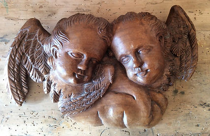 Inspirés des décors du XVIII ème siècle, les anges de l'amour sont en chêne ou en noyer, parfois joufflus, souriants ou rieurs.